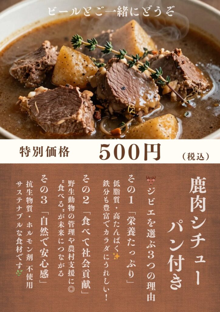 今回は関係者中心の案内だったようで、私もどこまで声をかけていいのか迷いながらも、うめらく会員のLINEグループでお知らせし、鹿シチューで中津ブルワリーの最後を飾らせていただきました。