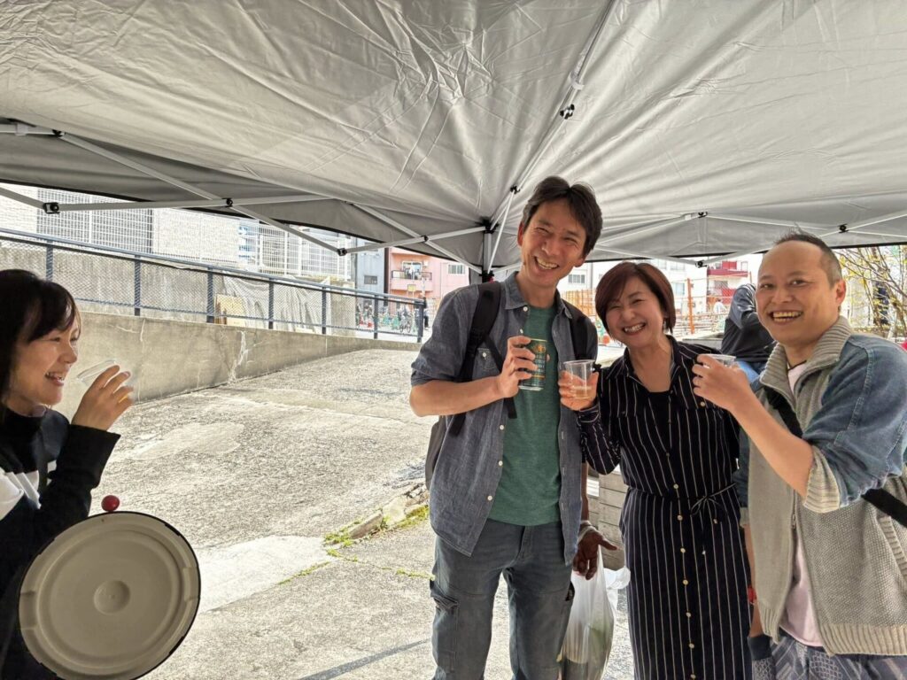 縁側では、ビールの仕込みで出会った方、ホップ作業でご一緒したキリンビールの社員さん、そして日頃からまちで関わる仲間たちと、自然と交流が生まれていました。